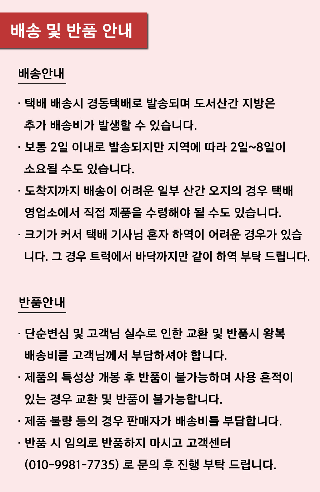- 제작, 배송, 설치를 본사에서 직접 관리합니다.